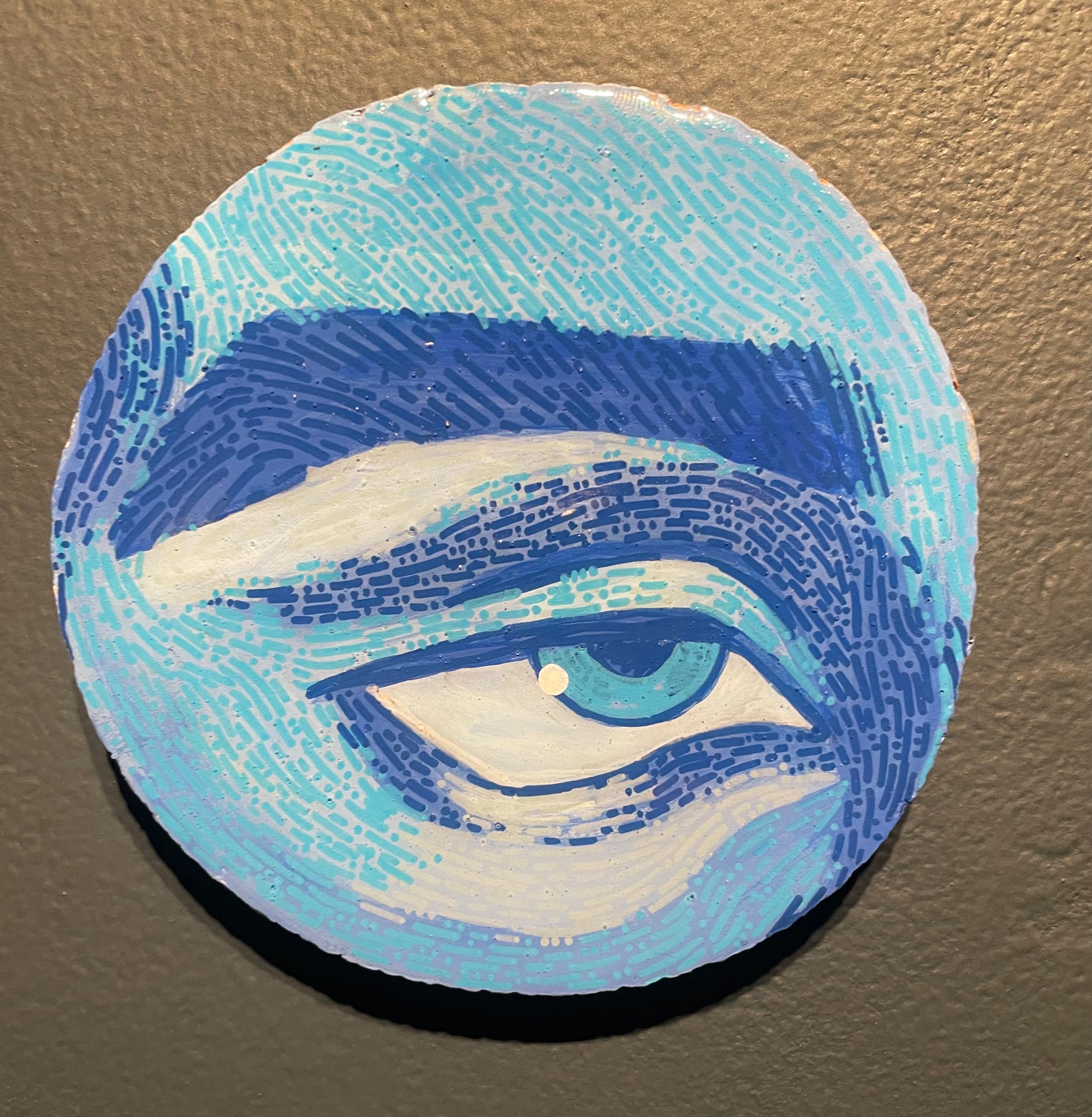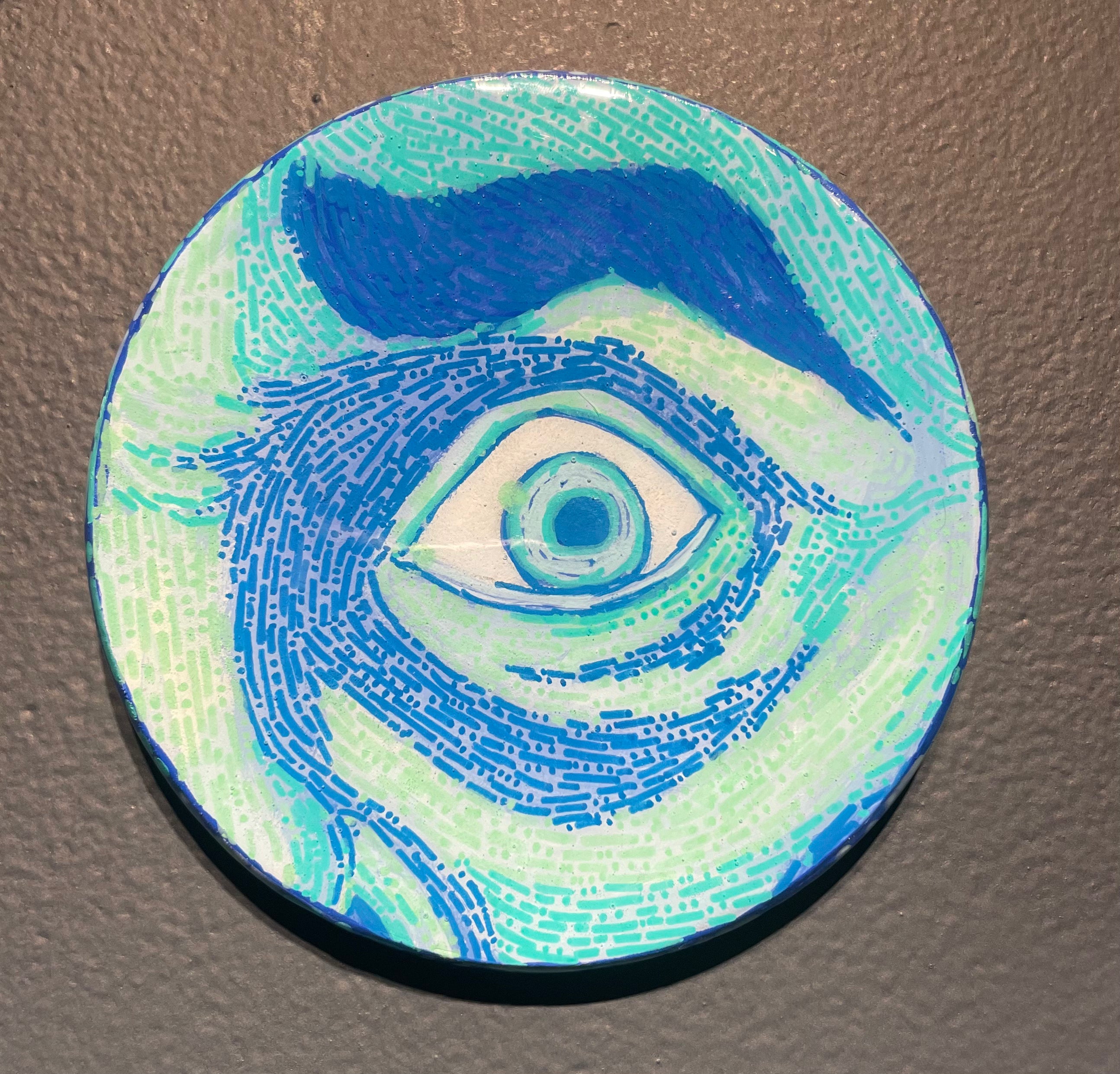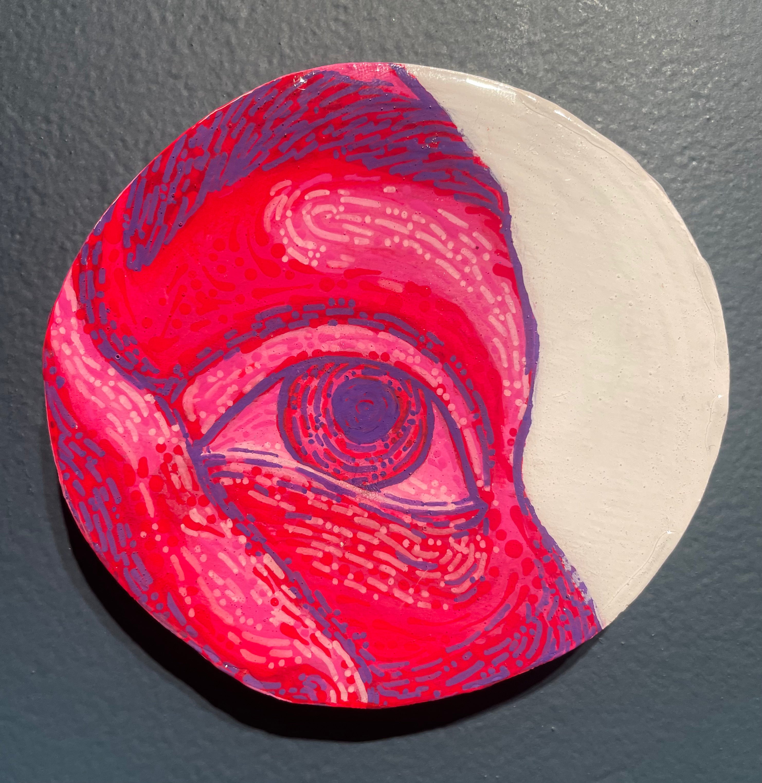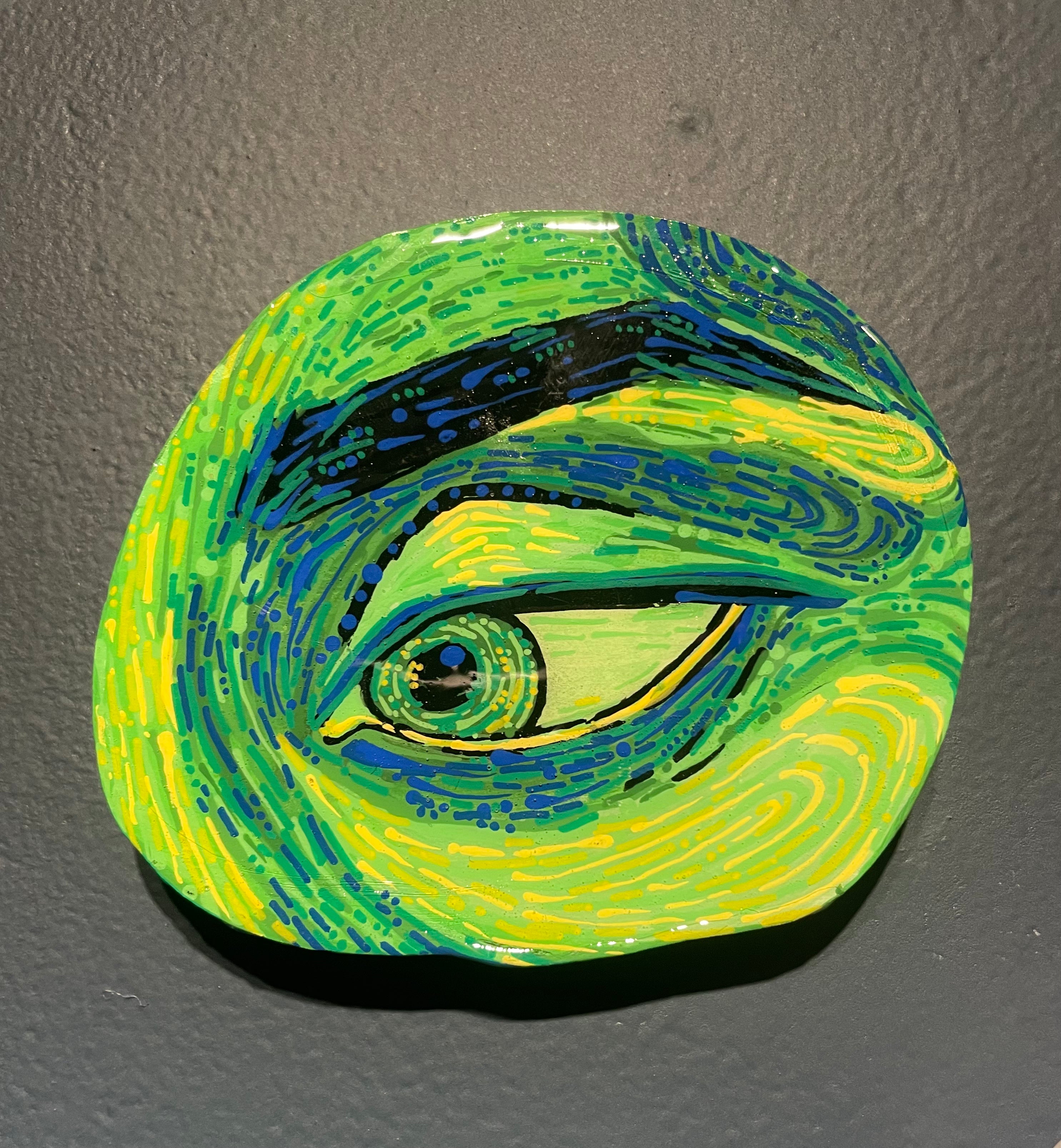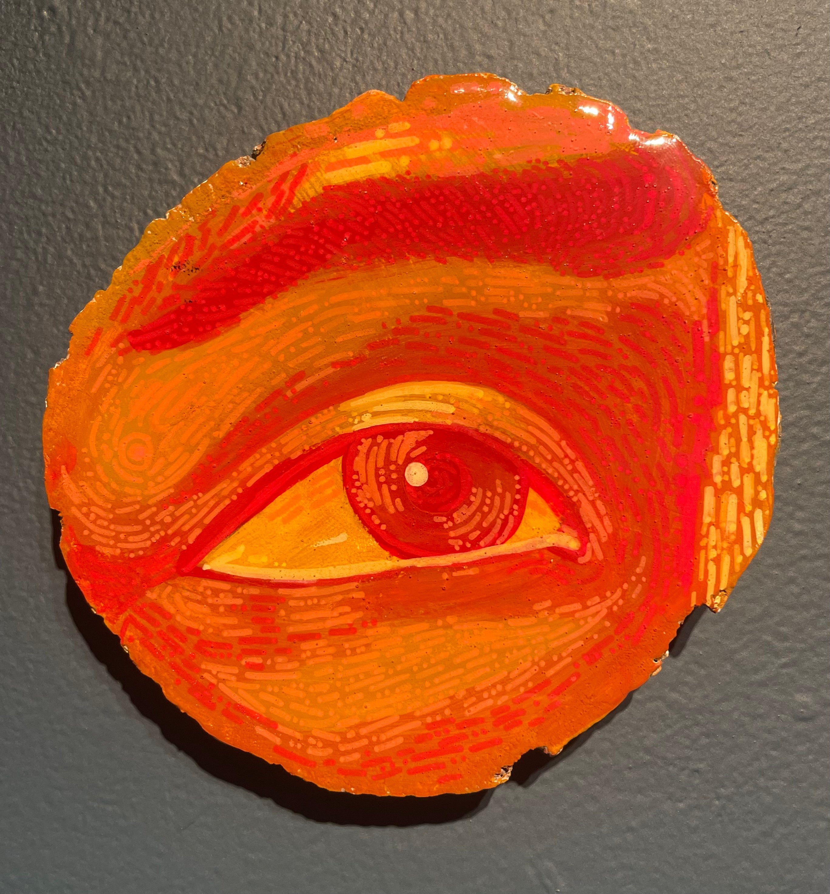 Glimpses; a series of studies using thread or paint on wood and sealed with a layer of resin; by local artist Needa Hameed