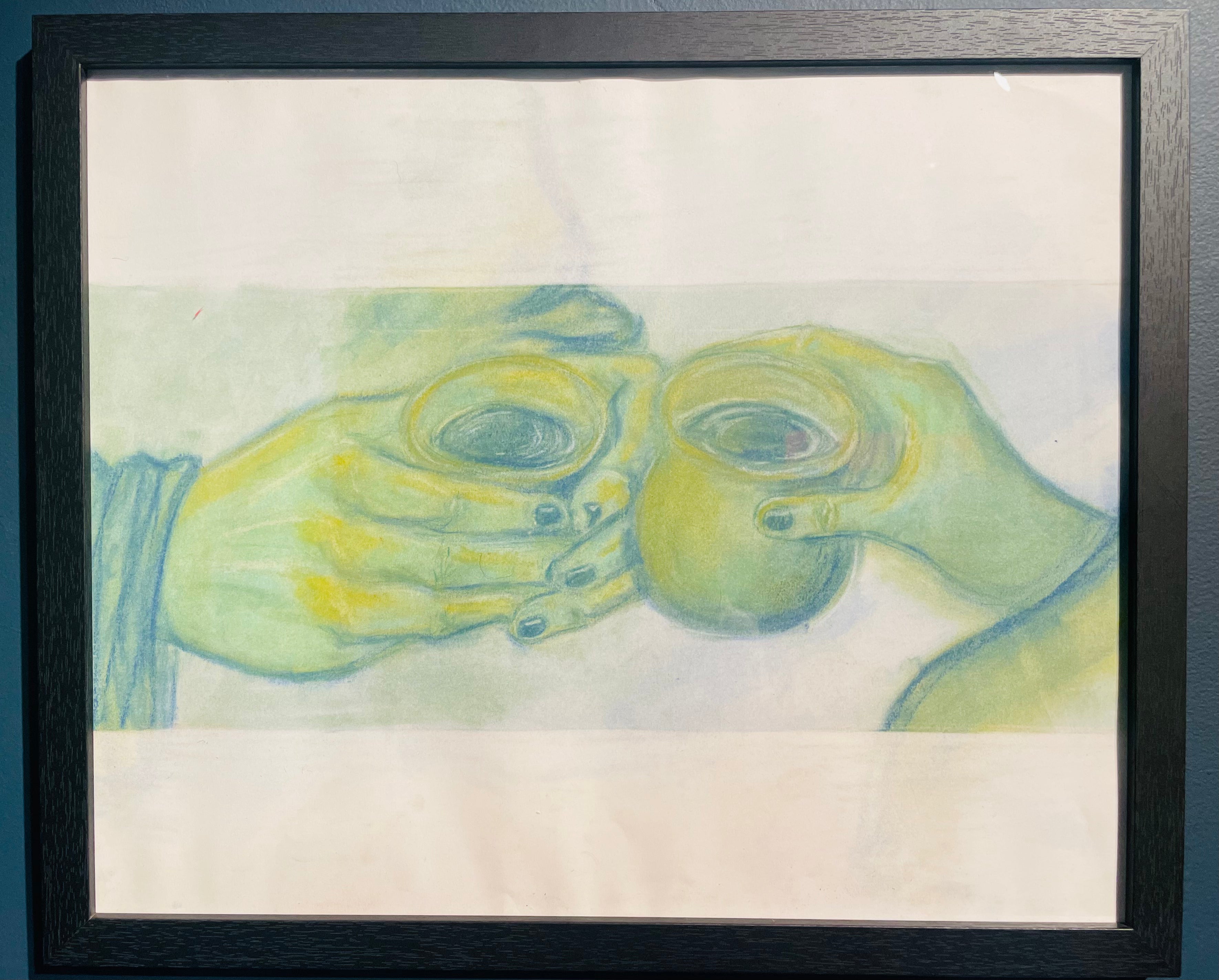 Mutka; framed chalk pastel drawing by local artist Needa Hameed