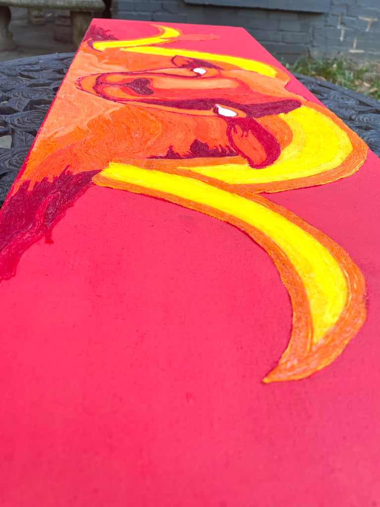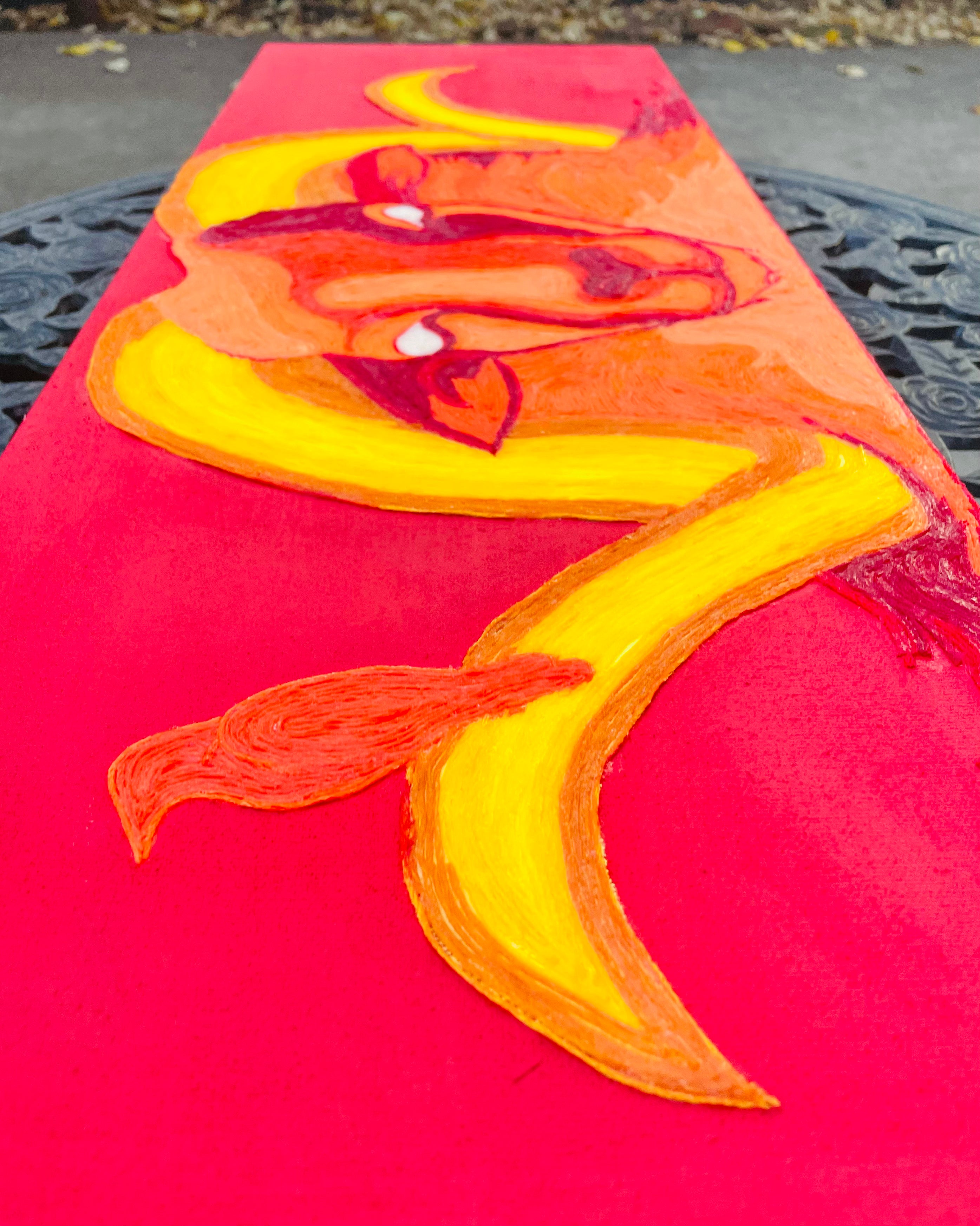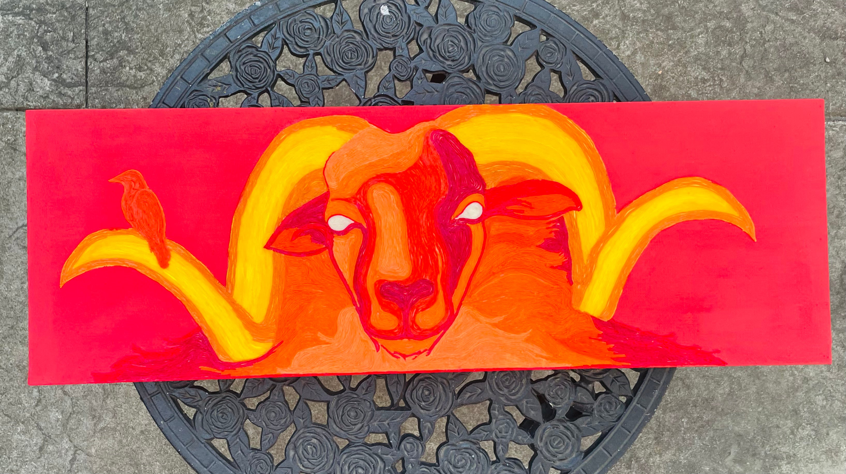 Unlikely Friends; thread and paint on canvas, by local artist Needa Hameed