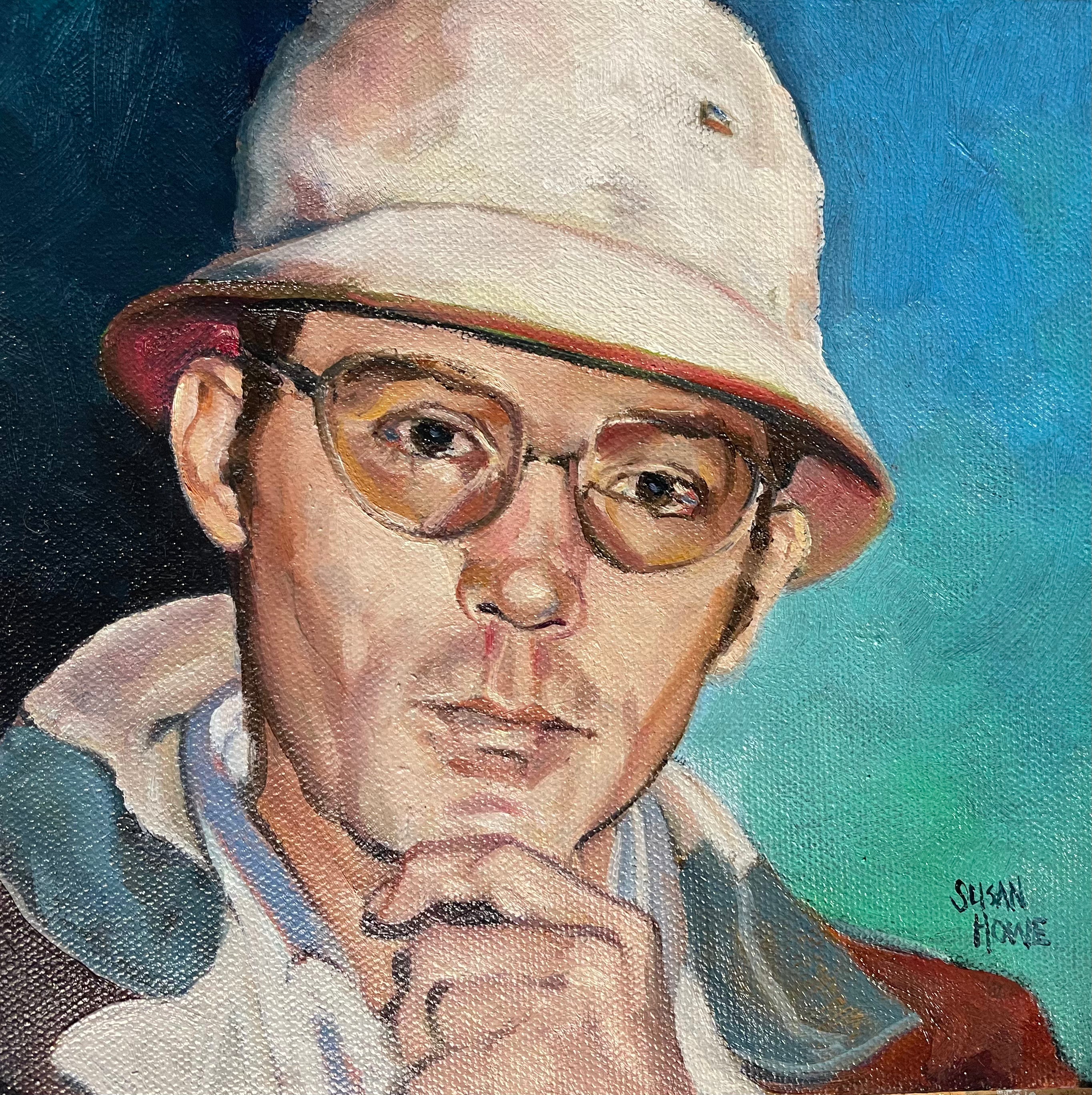 Hunter Thompson, oil painting, 8” x 8” by Susan Howe!