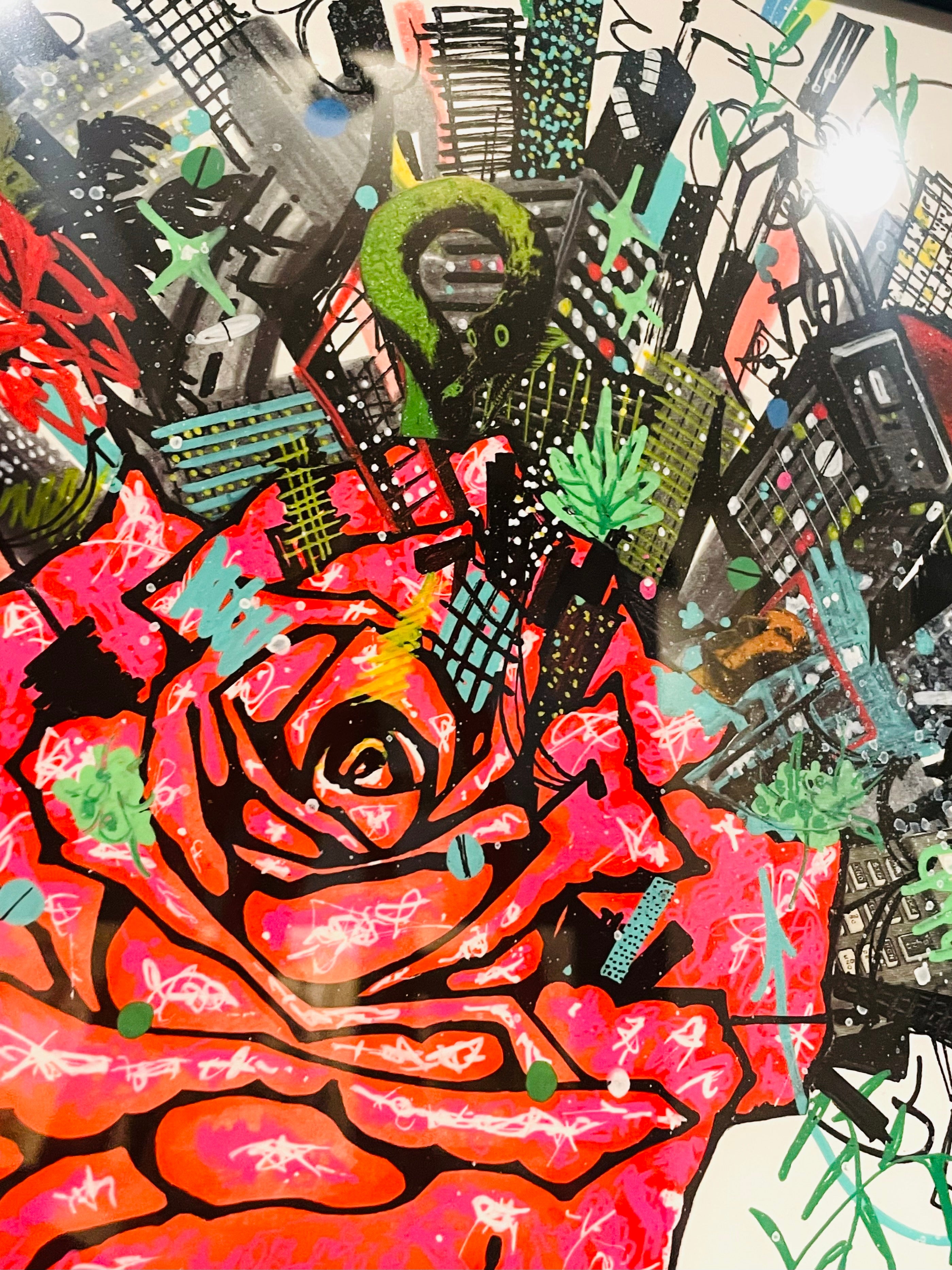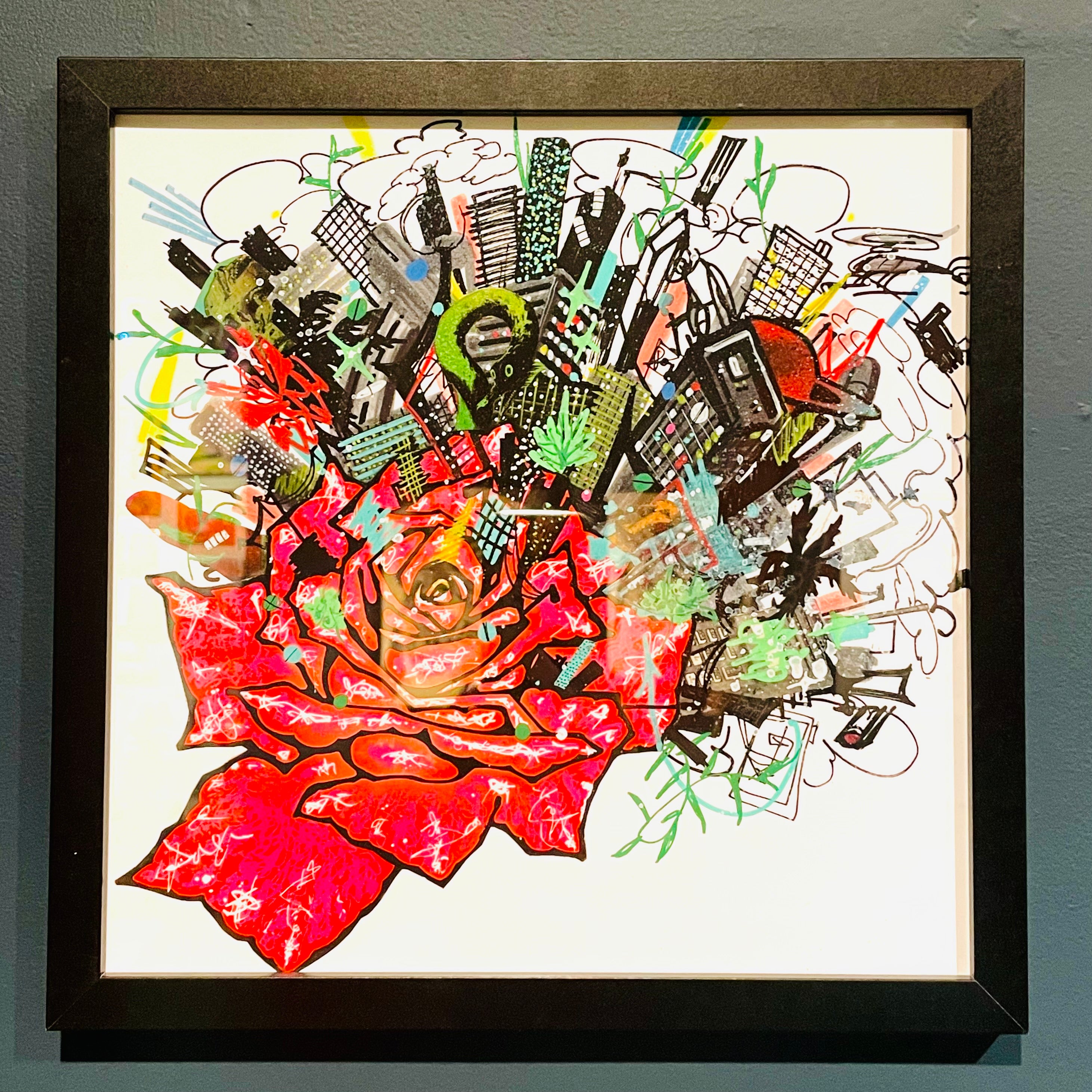 Chaos, Framed Mixed Media Drawing on Paper by Louisville Artist Jessie Rodriguez.