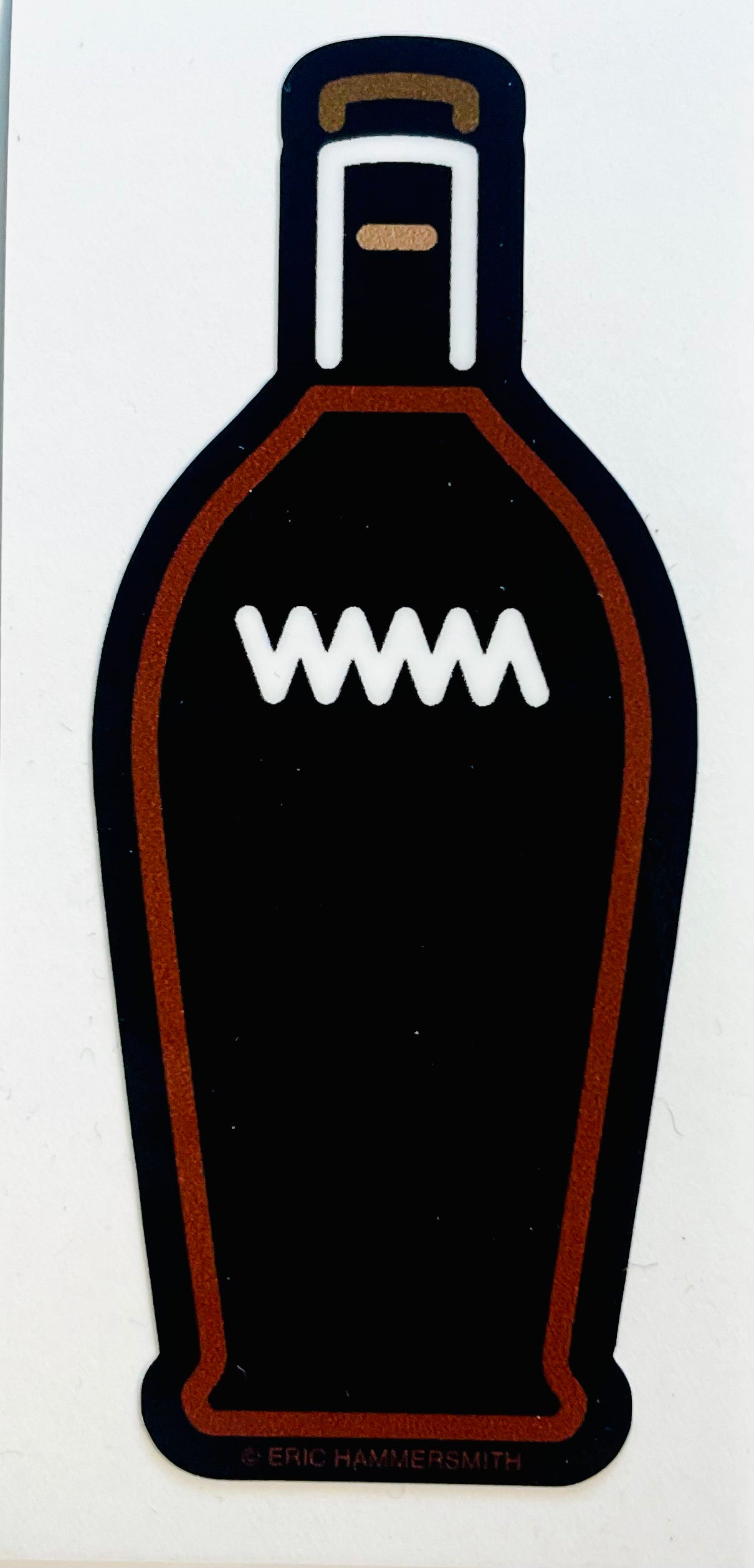 Vinyl sticker of a neon bourbon bottle, by local artist Eric Hammersmith