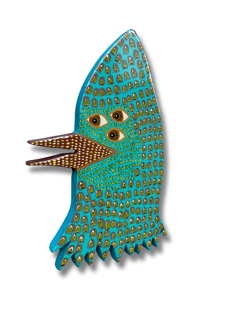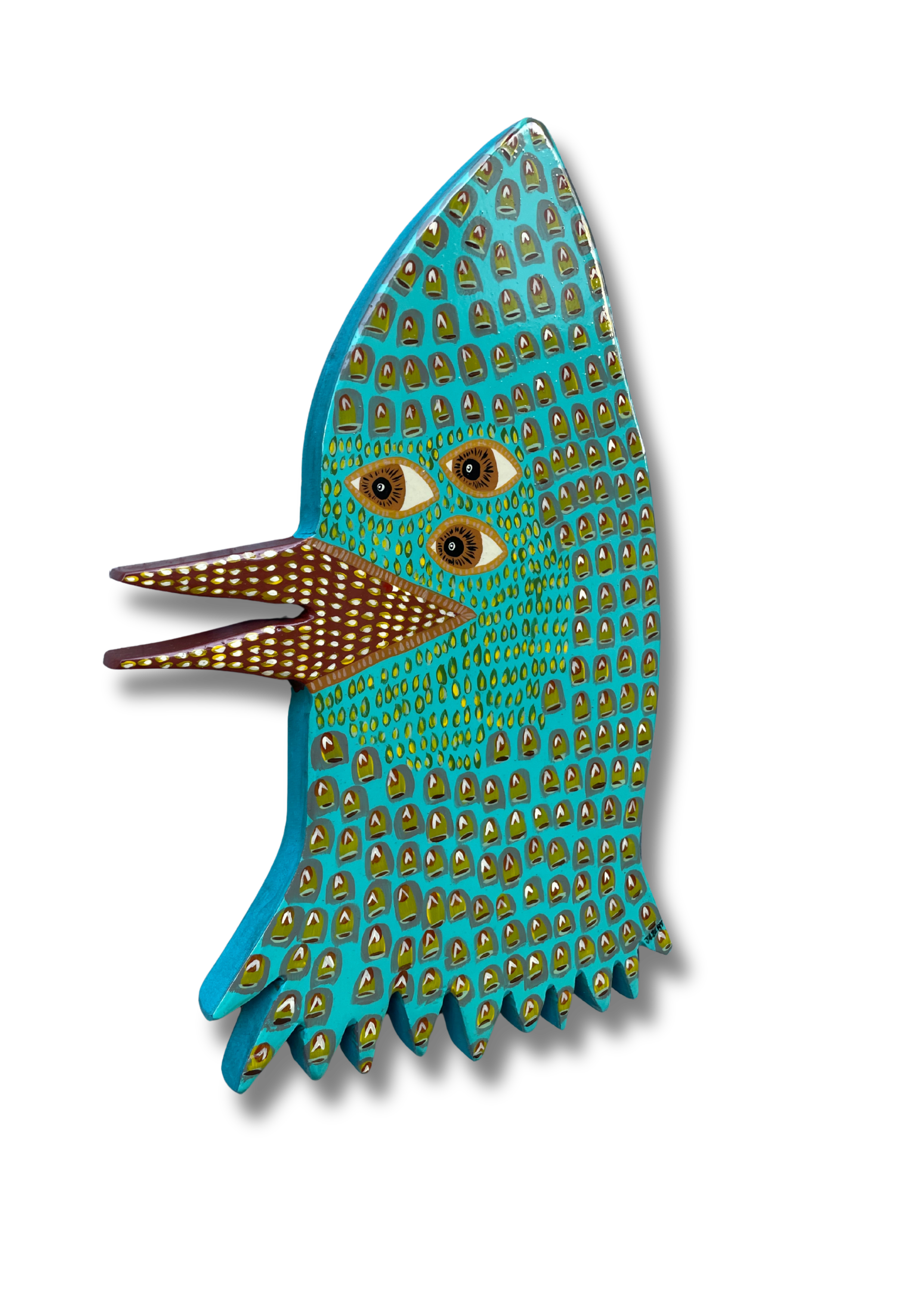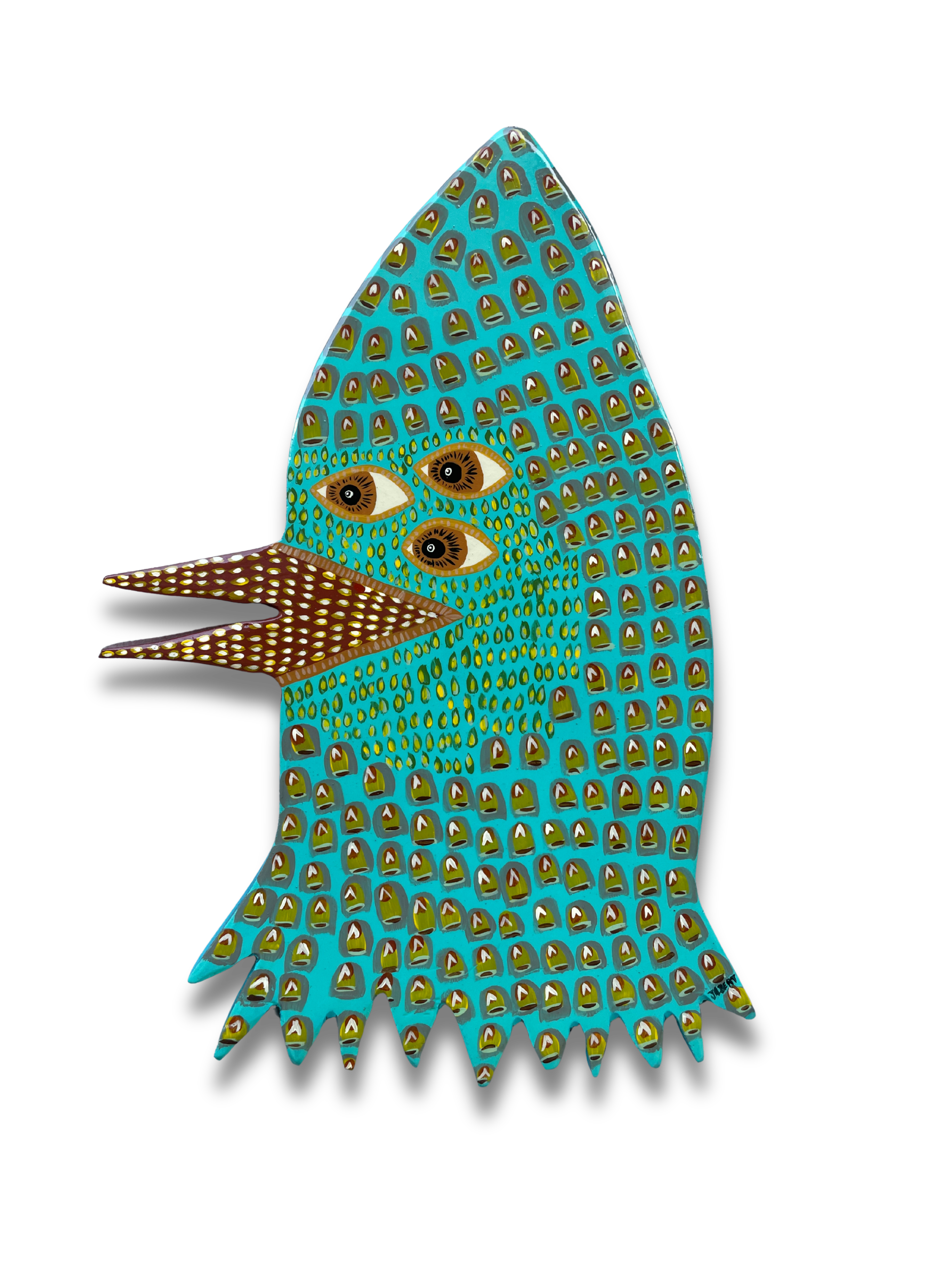 Acrylic and spray paint on 10.5" x 14.25" handcut wood panel by Louisville folk artist Patrick Jilbert.