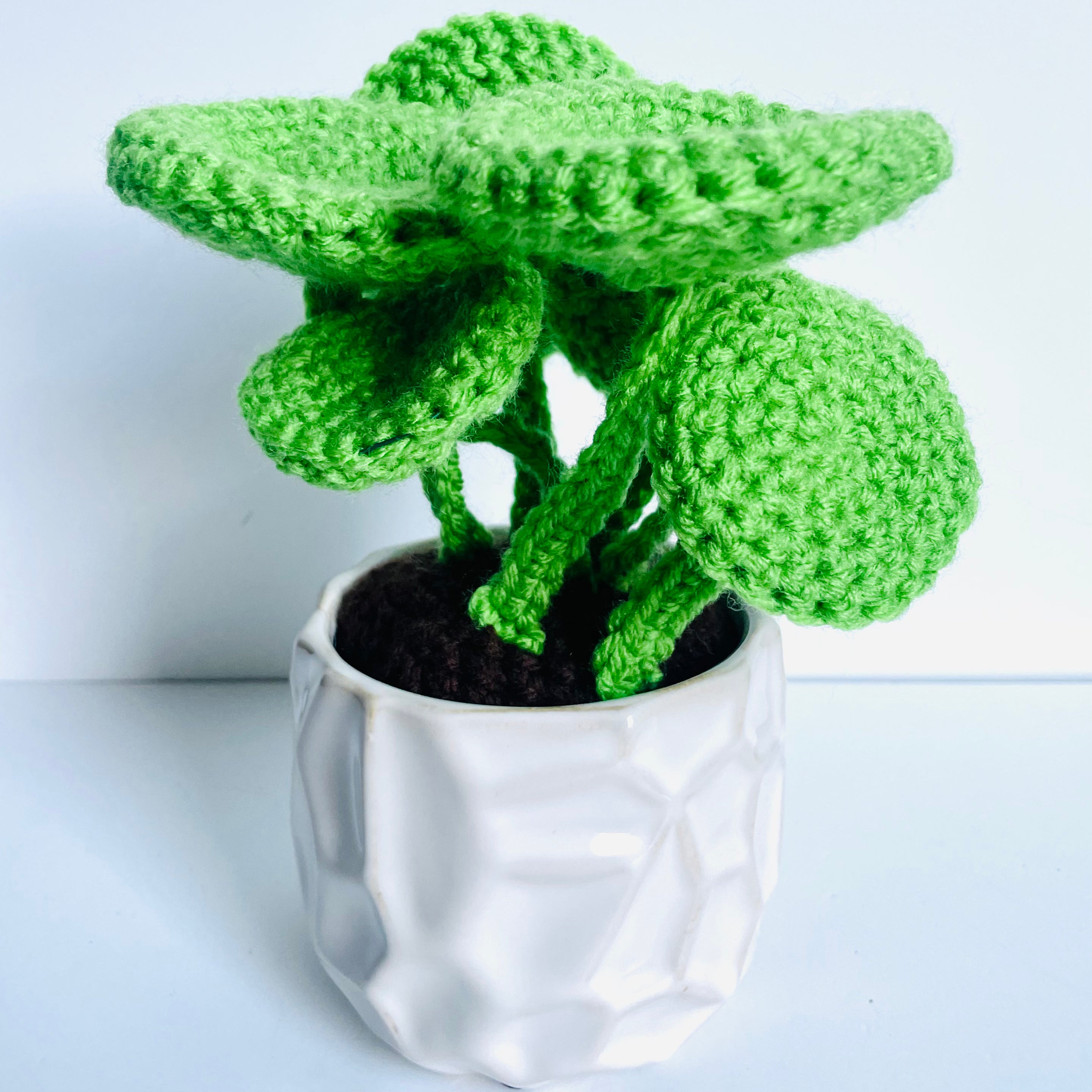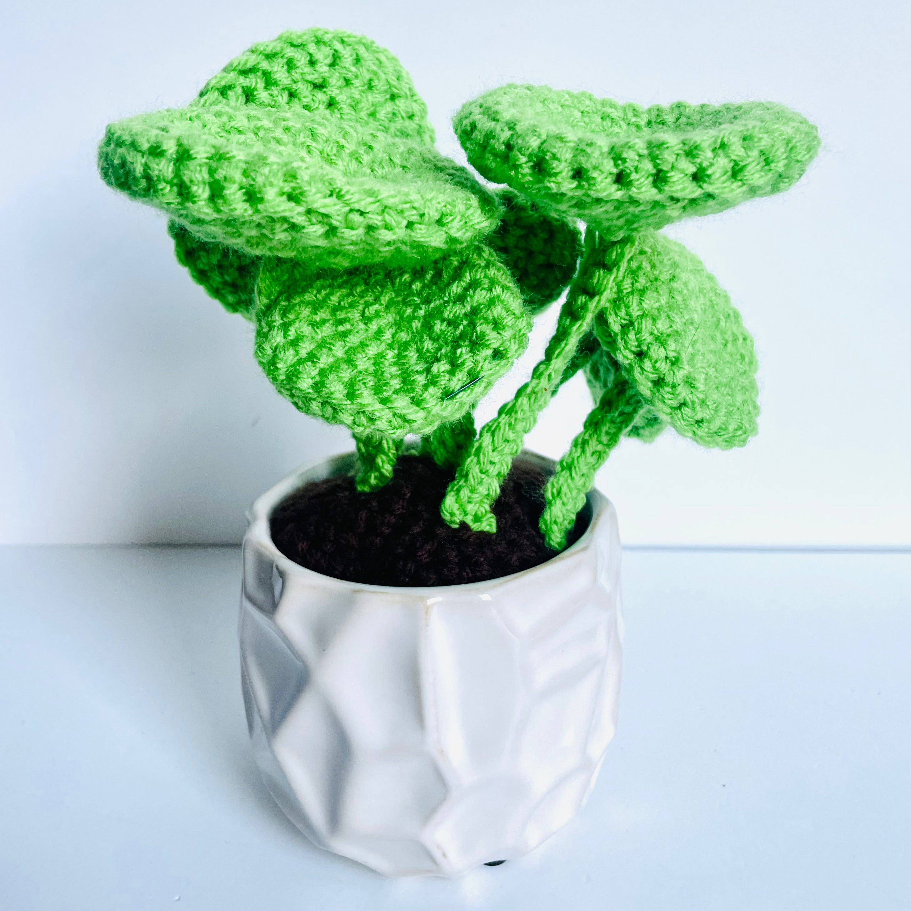 Crocheted plant with wire base in a ceramic planter, by local artist Cams Creations