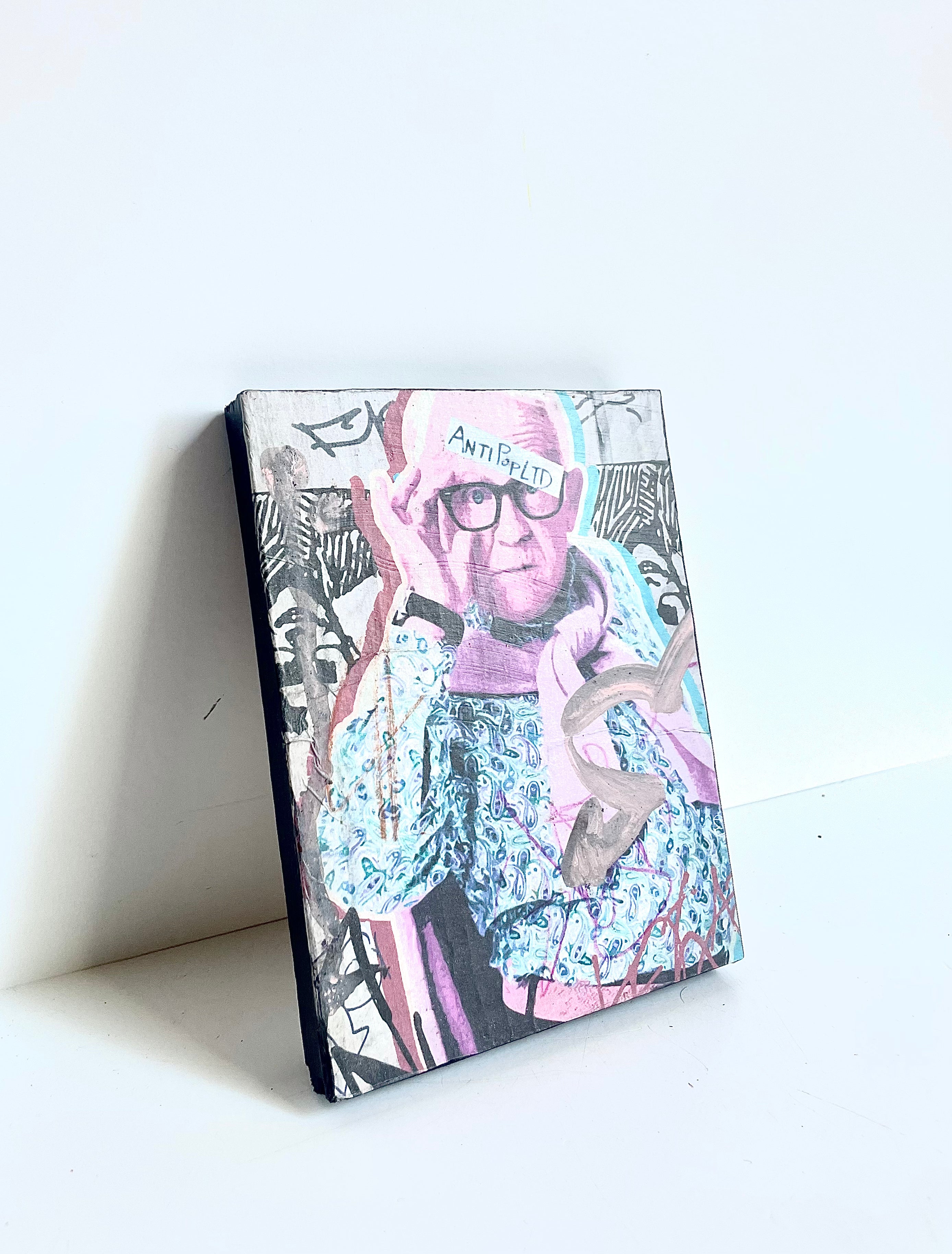 Named after the street art movement—each work of art includes found imagery, personal photography & drawings that are digitally manipulated, collaged and then wheat pasted on repurposed blocks of wood. Each piece is varnished, finished with black painted sides, signed & numbered on back.