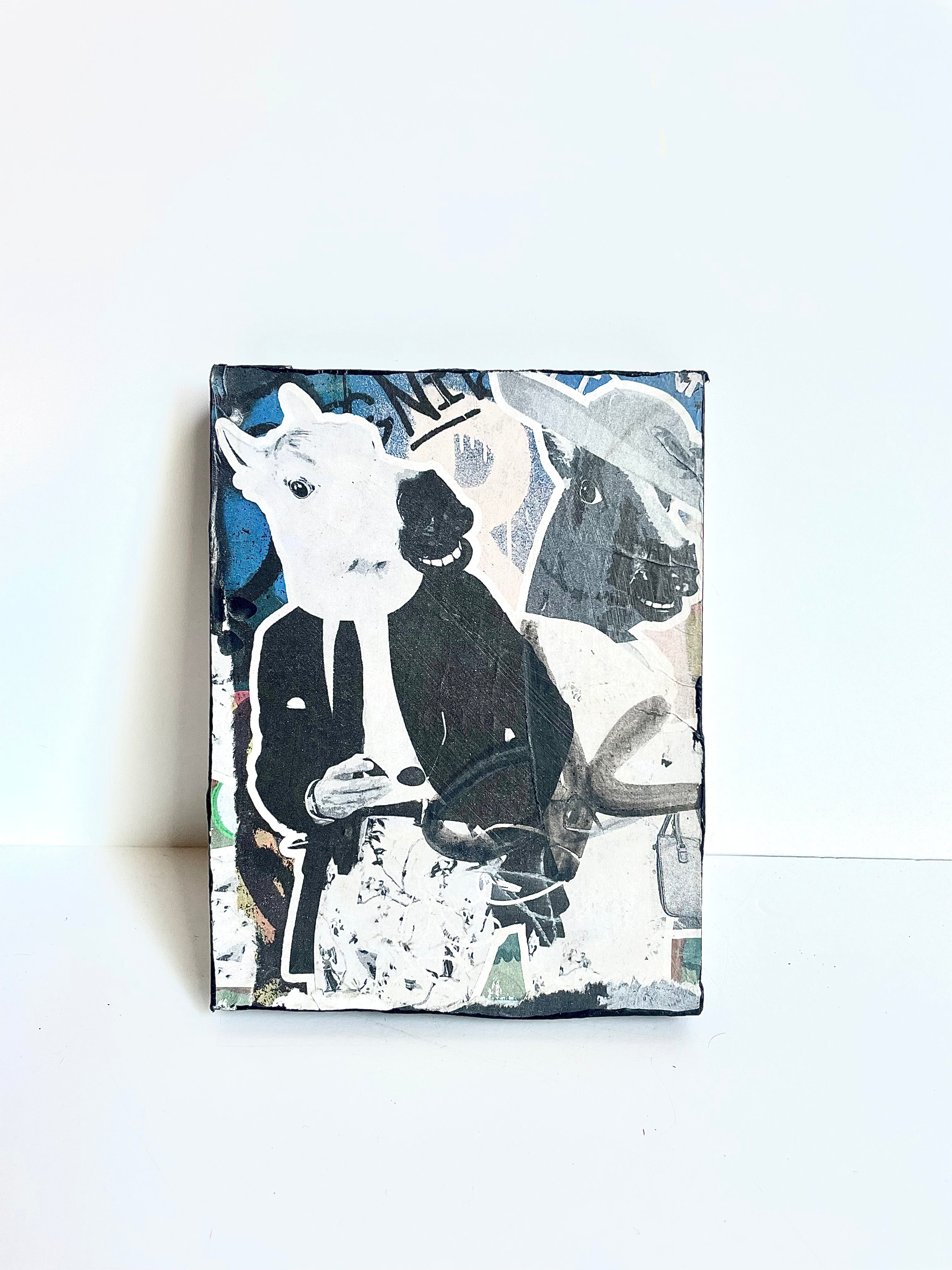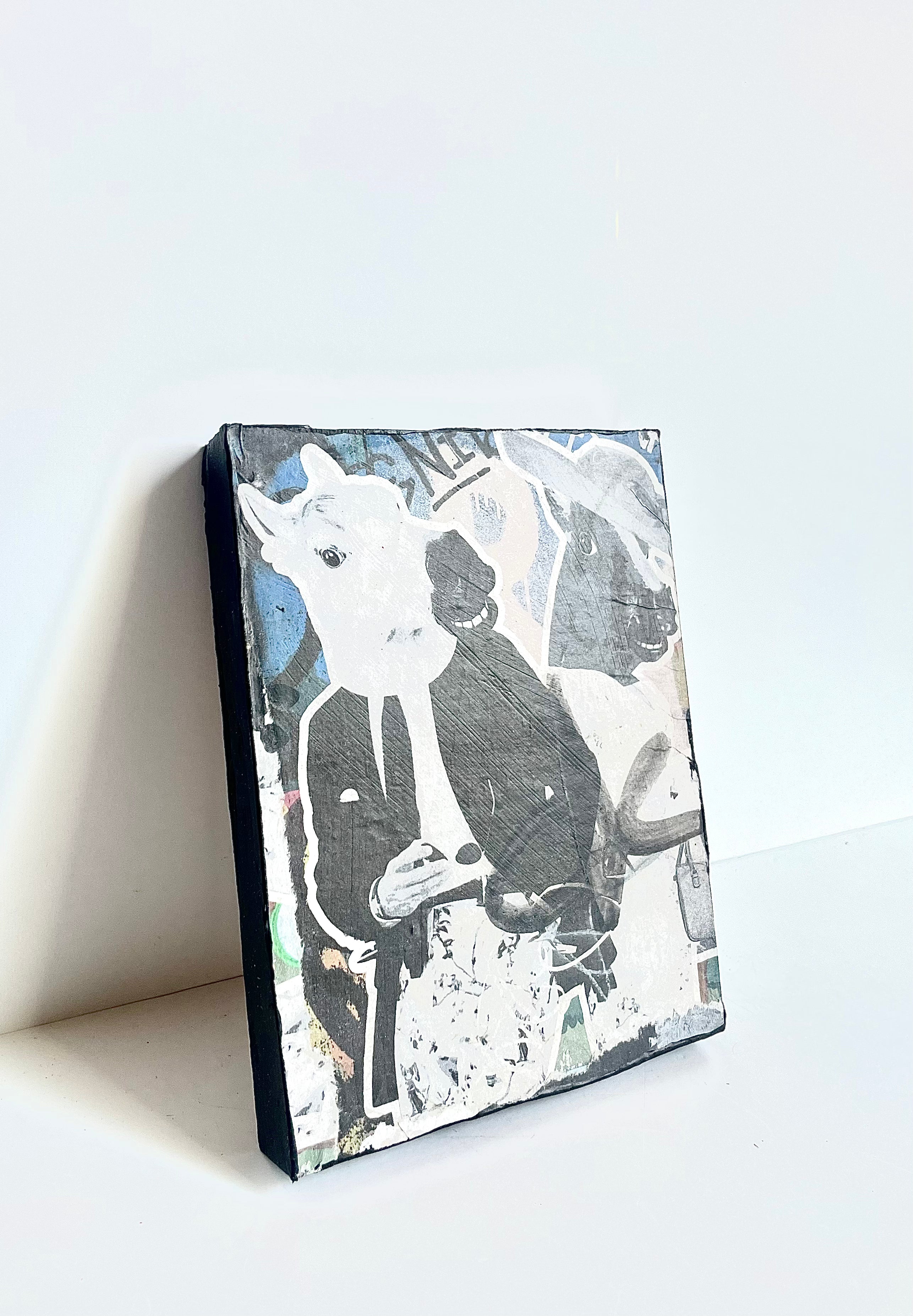 Named after the street art movement—each work of art includes found imagery, personal photography & drawings that are digitally manipulated, collaged and then wheat pasted on repurposed blocks of wood. Each piece is varnished, finished with black painted sides, signed & numbered on back.
