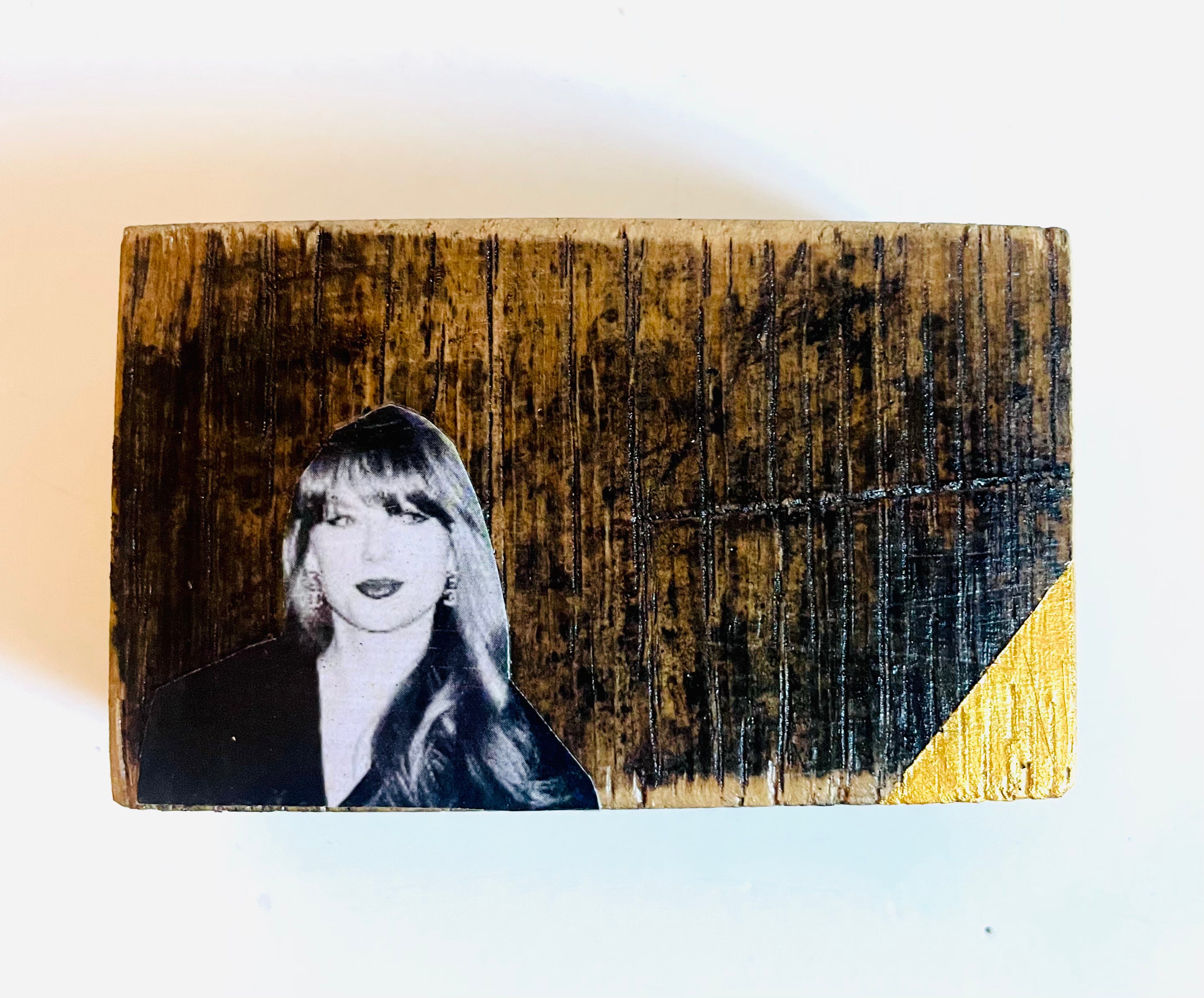 Original Bourbon Barrel collage art by local artist Natasha Sud.