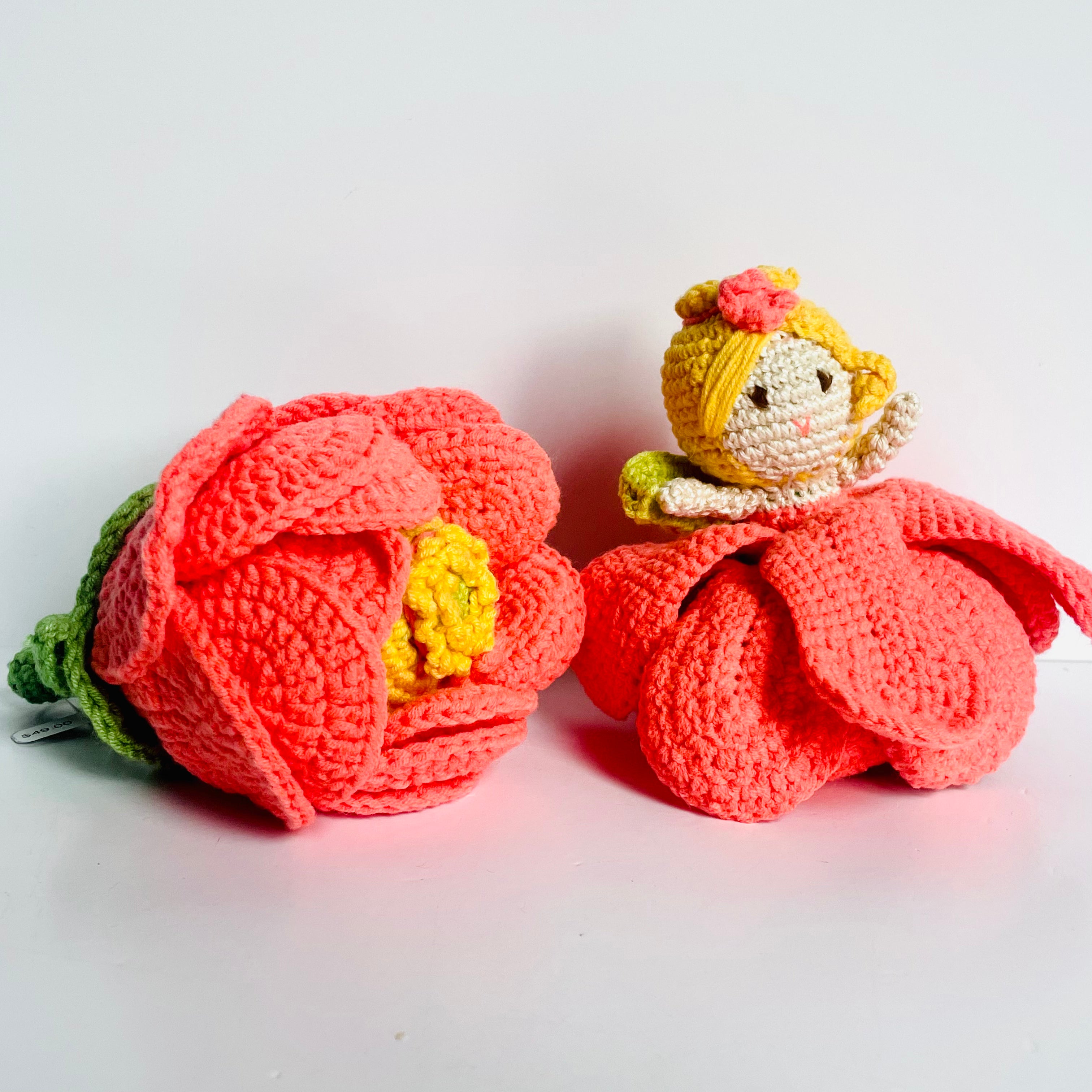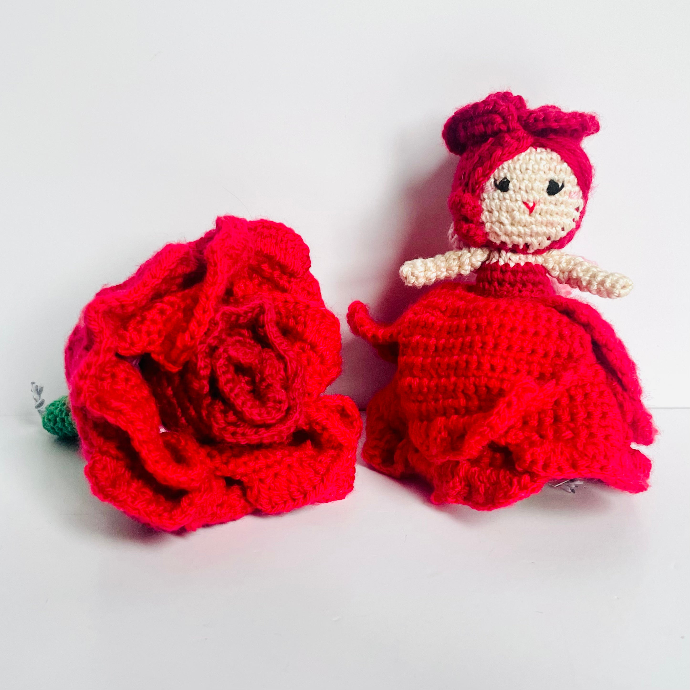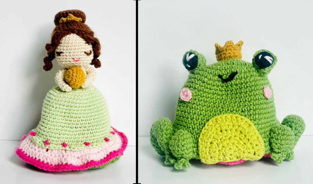 Crochet Fairy Tale Characters by Louisville artist Gretchen Leachman! Each is reversible - change from flowers to fairies, or from a frog to a princess!