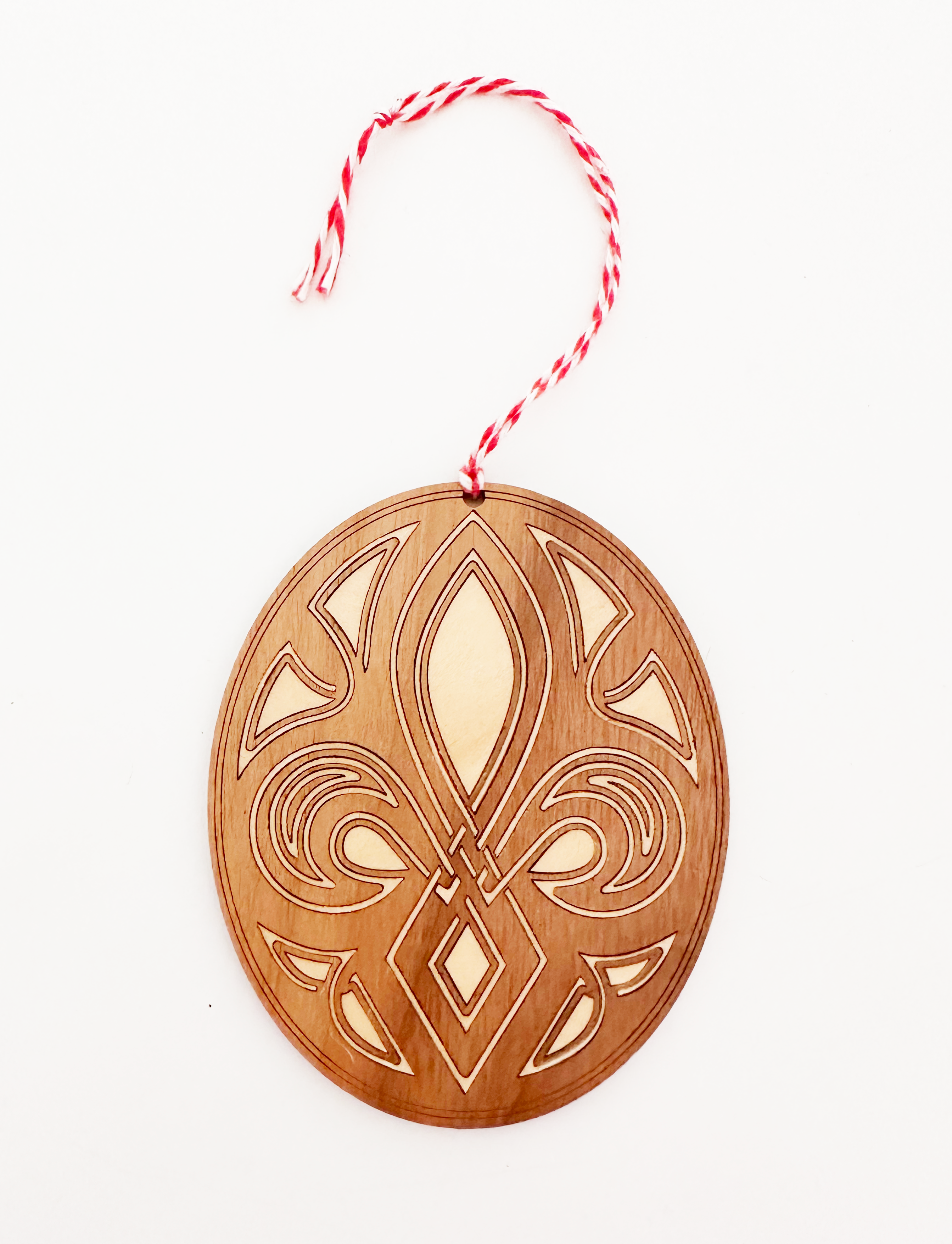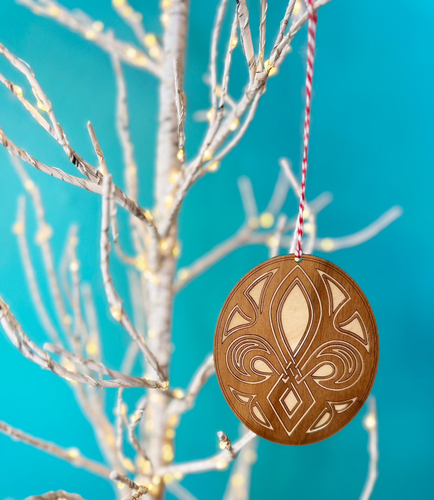 Handmade wood inlay ornaments by local Louisville artist, Gretchen Leachman Designs!