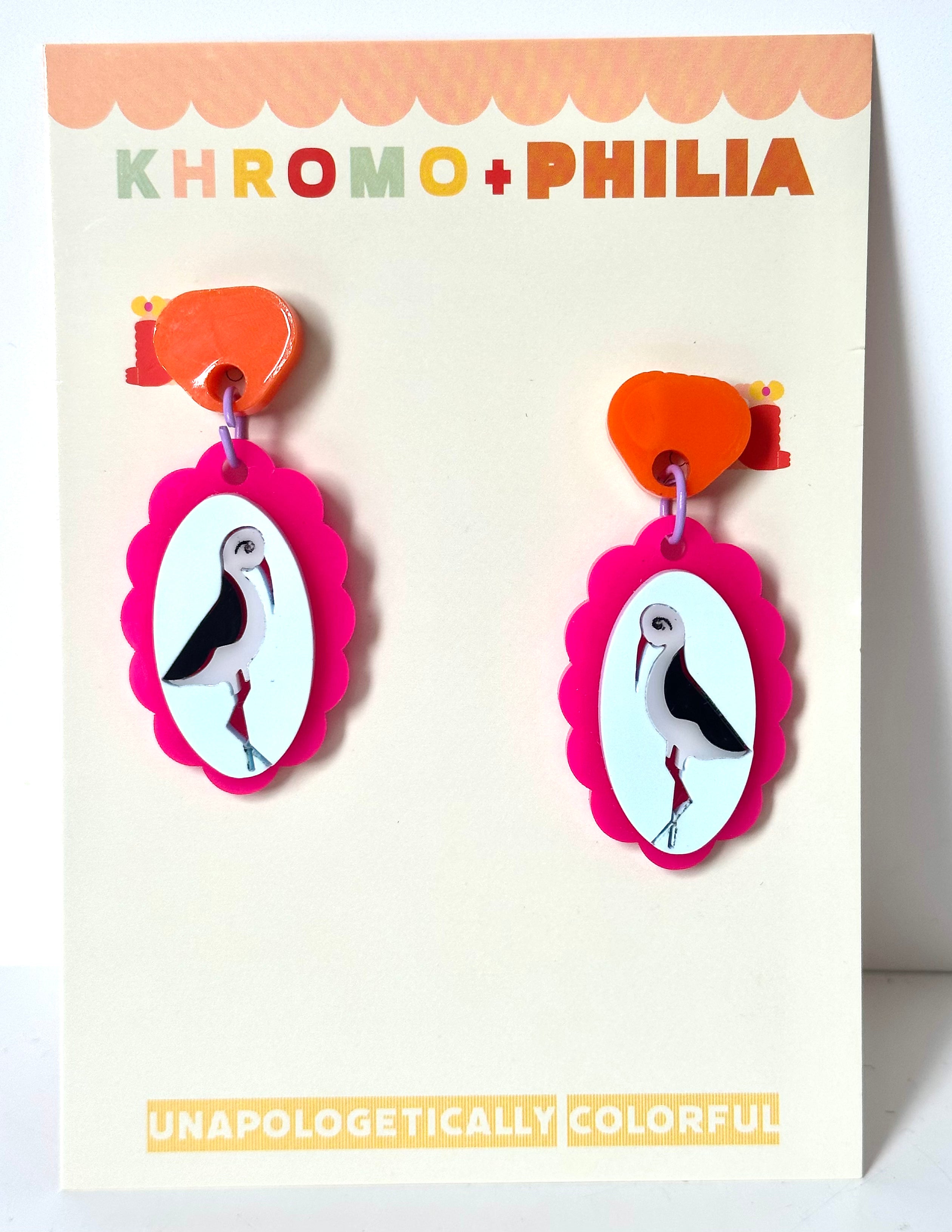 KHROMO+PHILIA - Birds in Pink Frame Earrings