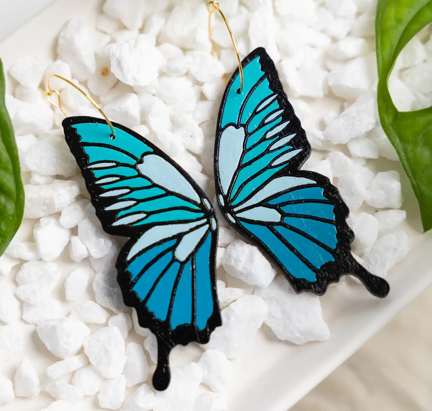 Le Chic Miami - Blue Butterfly Hoop Earrings