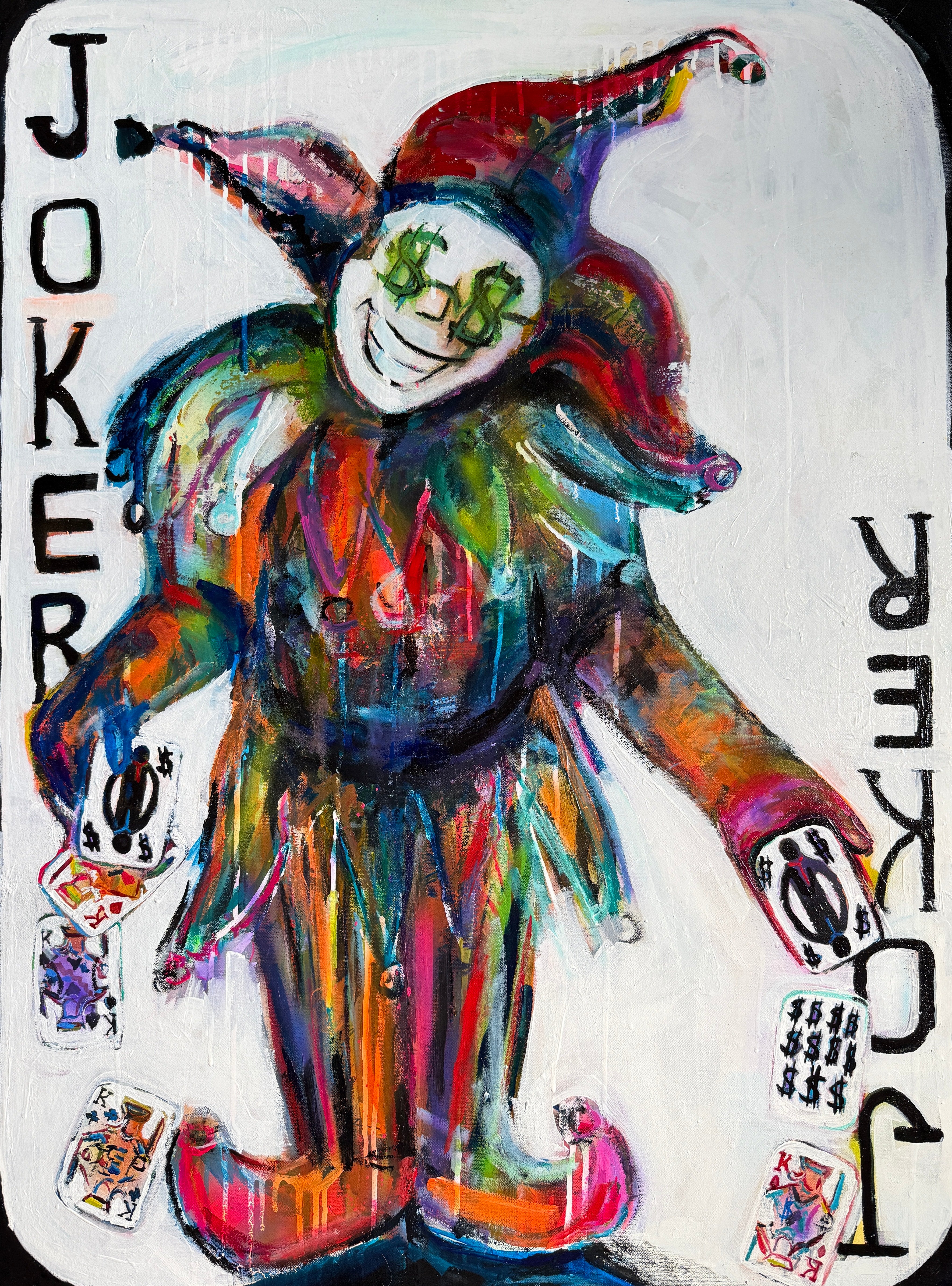Ego Says, Face Me; acrylic paint, spray paint, pastels on canvas; by local artist Lindsey Taylor.