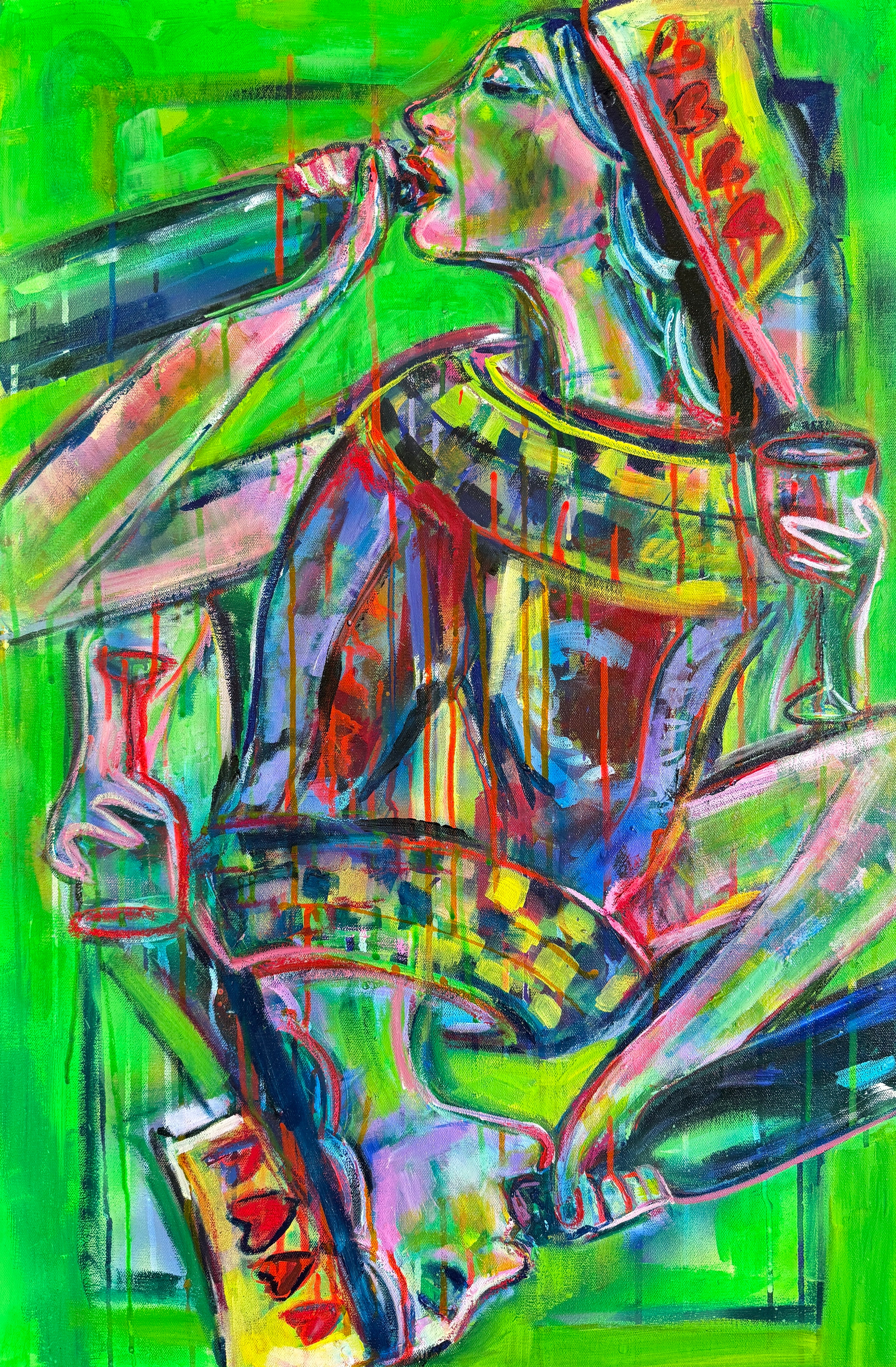 There Are No Rules; acrylic paint, spray paint, pastels on canvas; by local artist Lindsey Taylor.
