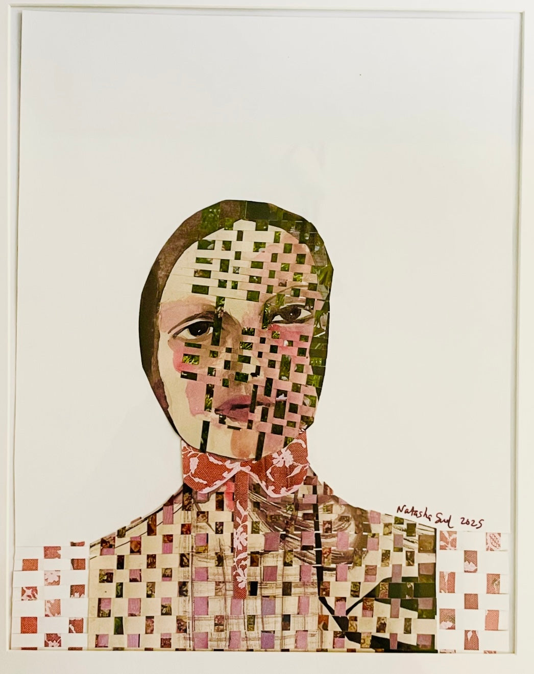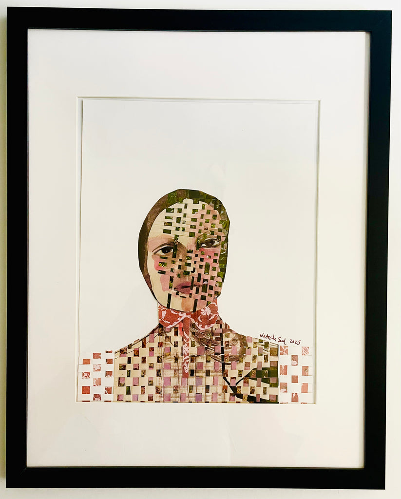 Original framed woven collage art by local artist Natasha Sud.