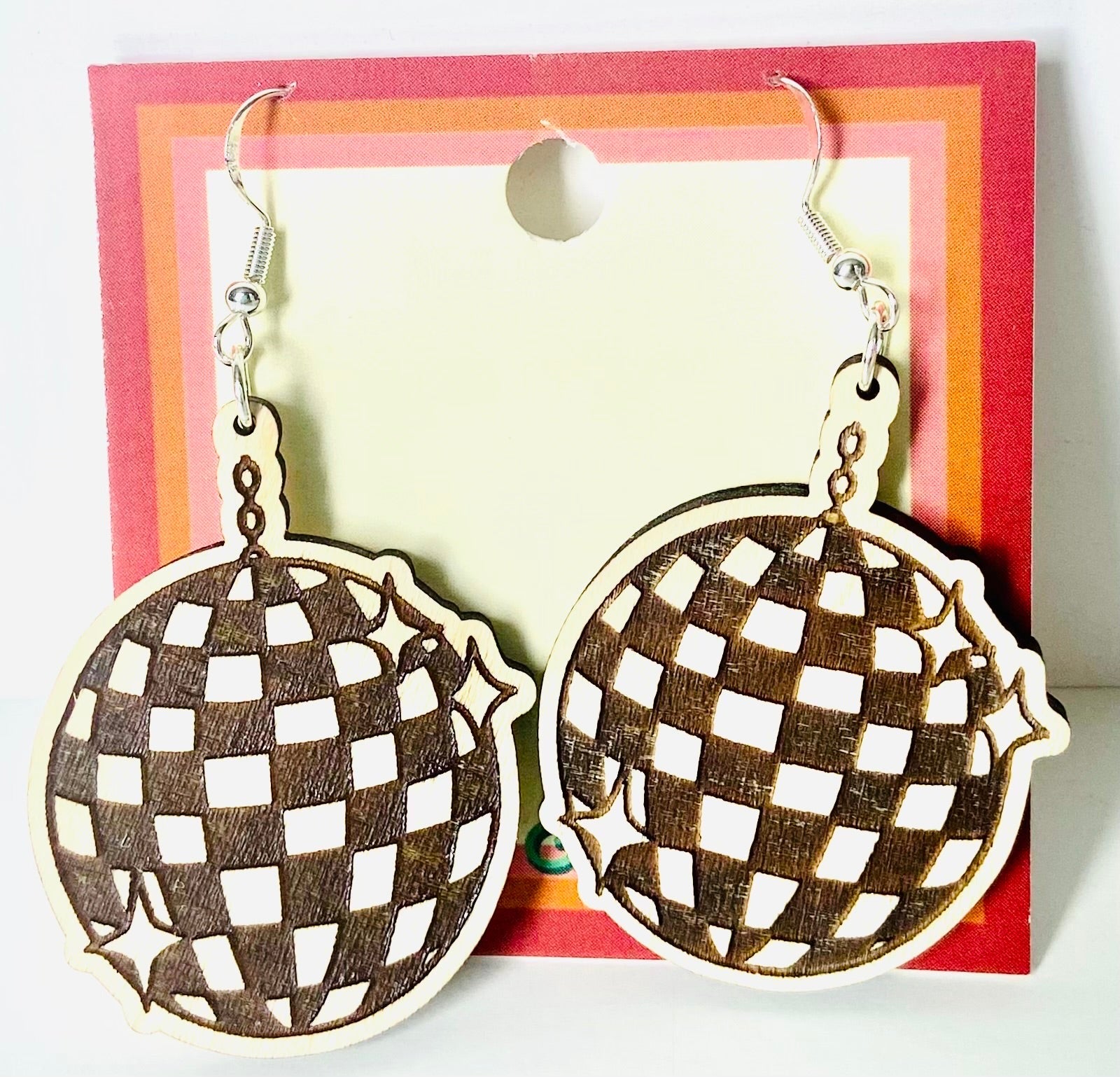 Laser-etched wood post earrings, by local artist Slate & Stone