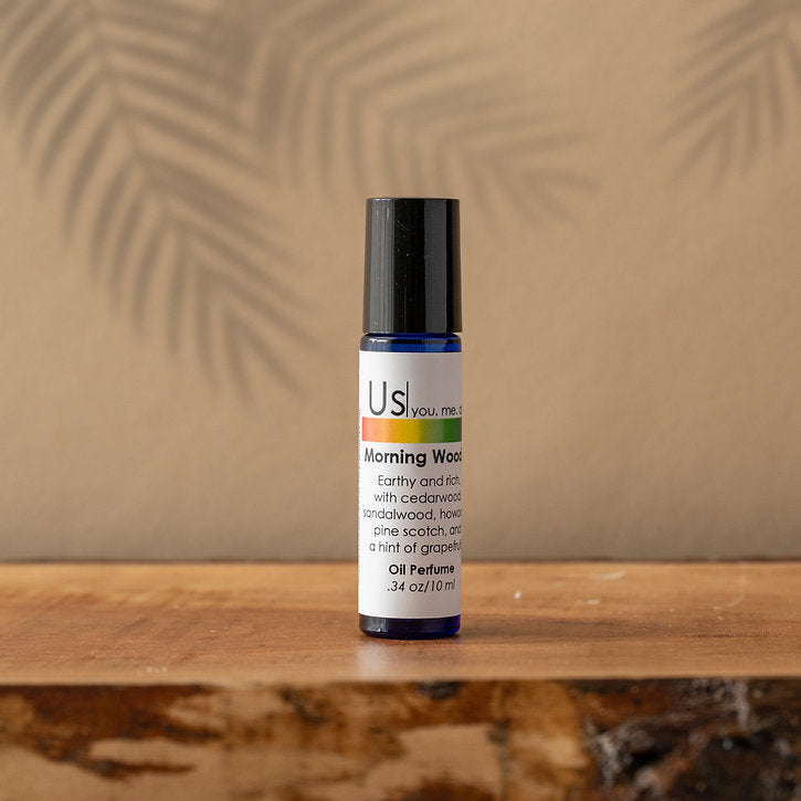 Morning Woods: Cedarwood, Sandalwood, Howood, and a hint of grapefruit in this roll-on fragrance.